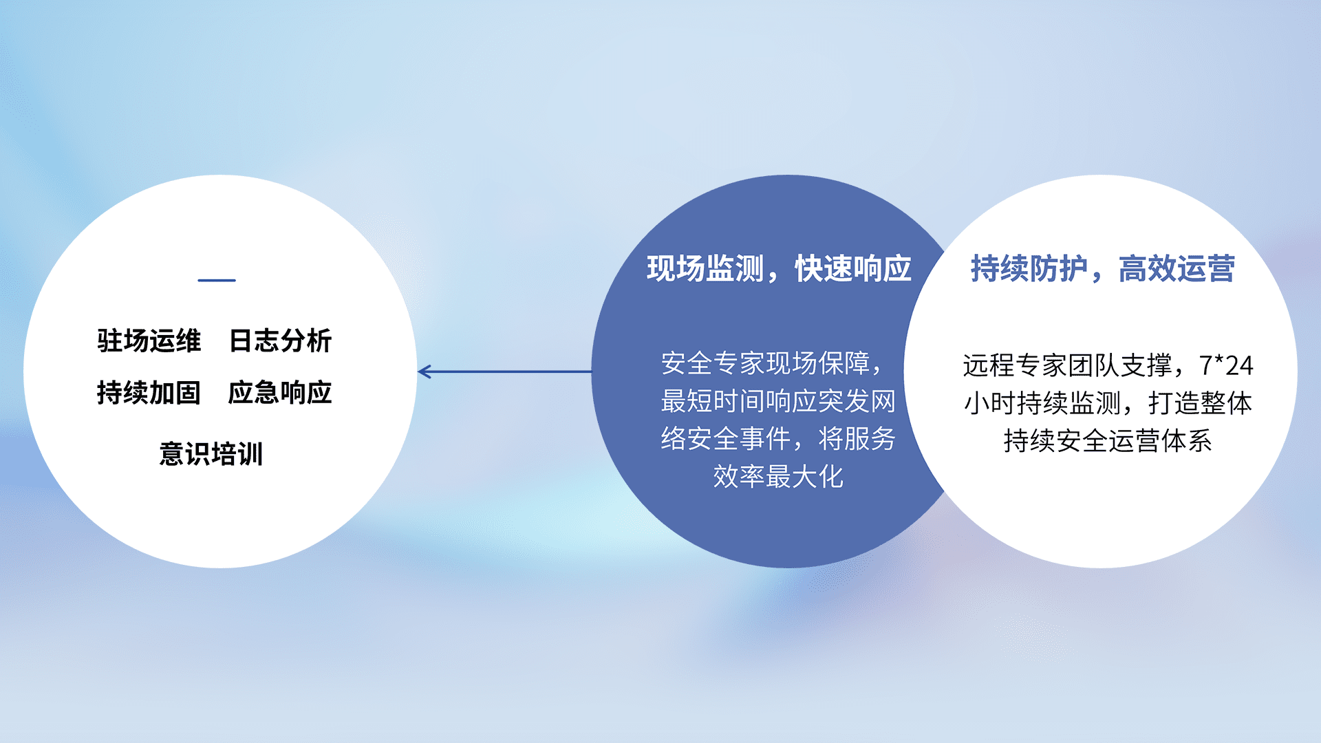 针对客户行业特性,,,,提供专属的一站式安全管理服务,,帮助客户全面感知网络空间威胁,,,通过安全专家的线上、、、线下防护支持,,,实现风险闭环,,将安全保障常态化,,为客户打造常态化安全运维运营服务。。。